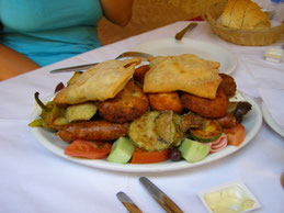 En hier zien jullie de pikilia of ook wel bekend als de mezes. Kleine hapjes maar genieten! Met een heerlijk wijntje kan niet beter.