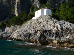Opmerkelijk is (dat vind ik tenminste) dat de Grieken in de geschiedenis overal kerken bouwden. Op de meest vreemde plaatsen. En soms vraag je je af, waarom hier?
