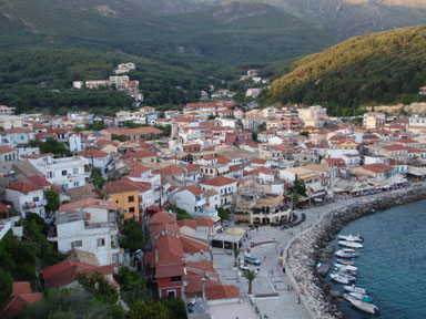 Parga, een dorpje, op het vaste land van Griekenland. Net onder Albanië en als je goed kijkt dan kan je Corfu zien liggen.