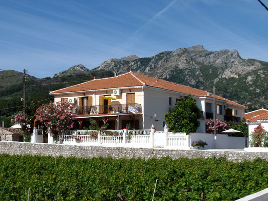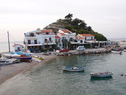 Samos. We zaten in Kokkari. Een gezellig klein dorpje direct aan de zee. Heerlijk strand met direct achter je kleine restaurantjes waar je als je op het strand vertoeft heerlijke versnaperingen kan halen.